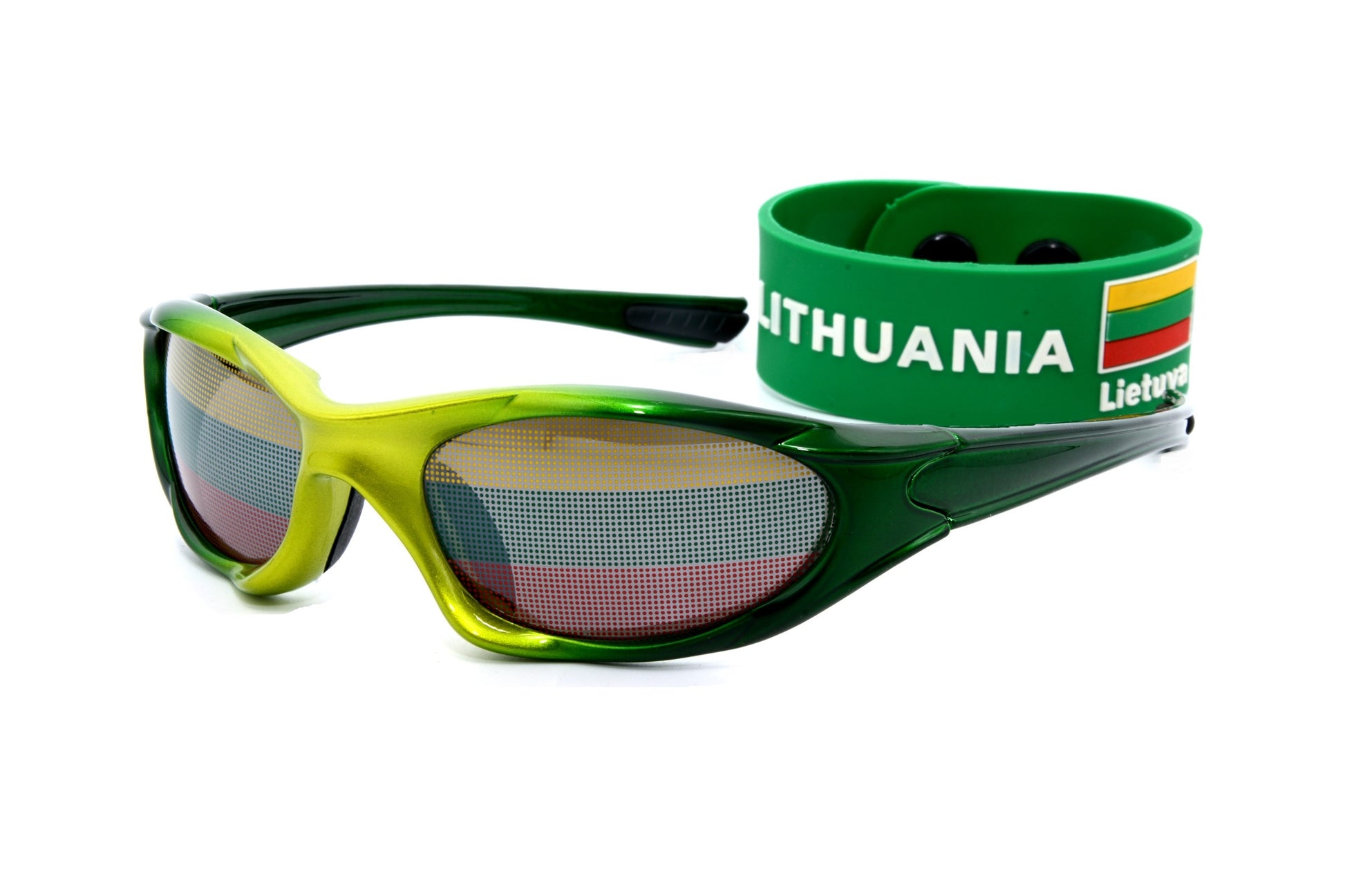 1) Žali akiniai su Lietuvos vėliava;
