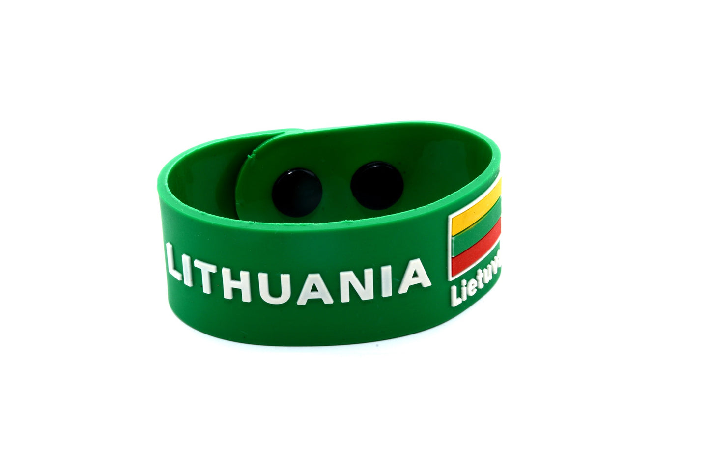 2) Žalia apyrankė su Užrašu Lithuania ir Lietuvos vėliava