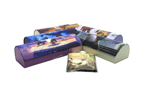 Dėklo viduje servetėlė su analogišku paveikslėliu.